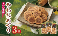 京都八幡名物「やわためぐり」は、砂糖と小麦粉と玉子の生地に八幡名産のてん茶(抹茶の原料)の茎の粉と抹茶を練り込んだ手焼きせんべいで、旨味成分テアニンが含まれていて、懐かしい素朴な味に仕上がっています。