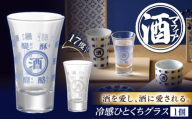 冷たいお酒を注いで、盃が17度以下になると、盃の内側に「酔・醸・酩・酬」など〃酒〃偏の漢字が美しく浮かび上がる冷感平盃です。