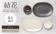 - 【美濃焼】結花 楕円皿・花形小皿 計4点セット(シルバーブラウン・アスト)【Felice-フェリーチェ-藤田陶器】 食器 おしゃれ オーバル プレート [MBX148]