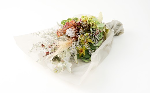 当店にて乾燥させてできたドライフラワーで製作。ナチュラルな色味がインテリア空間に癒しを与えてくれます。