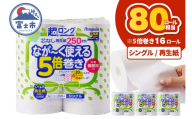 80ロール相当 トイレットペーパー 5倍巻き ペンギン 超ロング 16ロール(4R×4P) ダブル パルプ 1ロール125m 芯なし 無地 備蓄 防災 日用品 富士市
