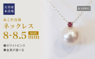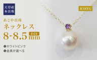 - S101-506_あこや真珠 ペンダント ネックレス 8mm - 8.5mm 天草 熊本 ホワイトピンク 誕生石 2月 アメシスト 半貴石 本真珠 K18 K18WG