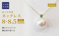 - S101-527_あこや真珠 ペンダント ネックレス 8mm - 8.5mm 天草 熊本 ホワイトピンク 誕生石 9月 サファイヤ 半貴石 本真珠 K18 K18WG