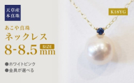 S101-527_あこや真珠 ペンダント ネックレス 8mm - 8.5mm 天草 熊本 ホワイトピンク 誕生石 9月 サファイヤ 半貴石 本真珠 K18 K18WG