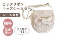【名入れ可能!】レース素材 ビッグリボン キッズショルダーバッグ【coco plus an factory】ミルキー×ブロンズ [OCR077-3]
