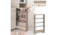 【完成品でお届け】すき間 ワゴンラック ロータイプ 幅10cm (グレージュ)キッチン 隙間収納 キャスター付き キッチンワゴン スリム 収納 キッチン隙間ワゴン キッチン隙間家具 ラック KKANRA945068-10-GBE