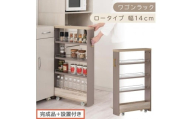 - 【完成品でお届け】すき間 ワゴンラック ロータイプ 幅14cm (グレージュ)キッチン 隙間収納 キャスター付き キッチンワゴン スリム 収納 キッチン隙間ワゴン キッチン隙間家具 ラック KKANRA945068-14-GBE