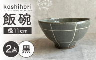【瀬戸焼】 Komasujibori こま筋彫 飯椀 2個 (黒) 【カネ三商店】 / 食器 茶碗 ご飯茶碗 ギフト / 瀬戸市 [BBDD038]