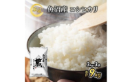 - 新潟県魚沼市産コシヒカリ100%:無洗米9kg(3kg×3袋)化粧箱入り