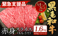 A4~A5限定 九州産 黒毛和牛 赤身 スライス(もも・うで)計1.6kg 400g×4パック 数量限定【2026年4月発送】
