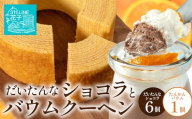 だいたんな詰め合わせ6個セット(ゼリー3個&ショコラ3個)と、南大隅産の素材にこだわった優しい甘さでふわふわのバウムクーヘン(プレーン)のセットです。
