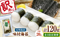 【全3回定期便】福岡有明のり 訳あり! 焼き海苔 20g×6袋 桂川町/株式会社木村食品 [ADCG028]