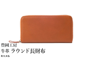 豊岡工房 牛革 ラウンド長財布(4379)イエロー / 長財布 ユニセックス 柔らかい シュリンク牛革 大きく開く 中が見やすい メンズ レディース 財布 さいふ サイフ 国産 日本製 小田清株式会社