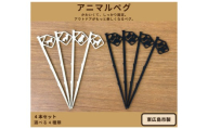 材質:鉄、重量:約110g、サイズ:約250mm(ヘッド部:約50mm)、厚み:約5mm、個数:4本。テントやタープのロープを固定する際、通常のペグと同じように地面へ打ち込んで使用します。硬い地面の場合は、軽く角度をつけて打ち込むと安定感が増します。またデザイン性が高いため、使わないときはインテリアやガーデン用のオブジェとして飾るのもおすすめ。愛犬家のギフトや、ペットとキャンプを楽しむ方への贈り物にもぴったりです。