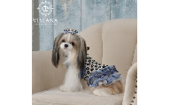 ふんわりと広がる2段フリルのスカートに、 繊細なチュールと清楚なホワイトレースをあしらった、上品で可愛らしいデザイン。 襟元にはVIVIANAのロゴがキラキラと輝き、存在感をプラス。 さらに、大小5つのLovelyなリボンが愛犬の可愛さを引き立てます。 専用バレッタもご用意していますので、ぜひチェックしてみてください。 ※モニター発色の具合により色合いが異なる場合がございます。 サイズ展開 XXS/XS/S/M/L/XL カラーバリエーション Pink/Green/Blue サイズガイド サイズ 着丈 胴回り 首回り 体重 XXS 16-18cm 26-28cm 17-19cm 0.5-1.0㎏ XS 19-21㎝ 29-31㎝ 19-21㎝ 1.0-2.0kg S 22-24㎝ 33-35㎝ 22-24㎝ 1.5-3.0 kg M 25-27㎝ 37-39㎝ 26-28㎝ 2.5-4.0 kg L 28-30㎝ 41-43㎝ 29-31㎝ 4.0-6.0 kg XL 31-33㎝ 45-47㎝ 33-35㎝ 6.0-8.0 kg ※上記に記載しております表はあくまで目安になります。洋服のデザイン、また愛犬の個体差や毛量によって若干サイズが異なる場合がございますので、 必ず事前にワンちゃんのサイズを測った上でご検討下さい。