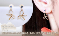 アールのかかった立体感のあるリボンが揺れるピアスです。