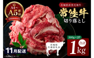 【2027年1月発送予定】最高級A4.A5ランク 常陸牛 切り落し 1kg(約500g×2)【人気肉 お肉 牛肉 和牛 黒毛和牛 国産黒毛和牛 モモ 肩 切り落とし 国産牛 A5 A4 すき焼き 牛丼 ブランド牛】(CR106-1)