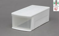 ウォークインクローゼットにもぴったりなチェストです。上段を下段に引っ掛けて固定するので、引き出す際に転倒せず、前倒れを防ぐ構造です。積み重ねても使いやすい仕様です。