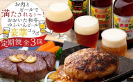 【定期便 全3回】毎月のご褒美に♪おおいた和牛・ゆふいんビール の豪華コラボ定期便(和牛ハンバーグ10個・ビール6本・サーロインステーキ3枚)