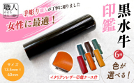 【女性向け】手彫り職人が彫ったオランダ水牛印鑑13.5mm イタリアンレザ-印鑑ケース付き[5839-2151]