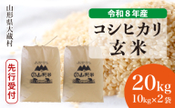 <令和8年産米先行受付> 大蔵村産 特別栽培米 つや姫 【玄米】 20kg (10kg×2袋)<配送時期選べます>