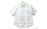 CLOFT 麻100%半袖オリジナルプリントシャツ”サボテン多肉植物柄”(C/#28 ブルー) M 新宿区 シャツ カジュアル オリジナル 柄 上質 こだわり プレゼント 半袖 夏服 青 0139-029-S07-4