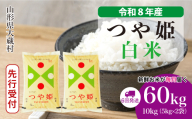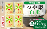 <令和8年産米先行受付> 真室川町産 特別栽培米 つや姫 【白米】 定期便 60kg (20kg×2ヶ月間隔で3回お届け)<配送時期指定可>
