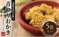 小林海苔店のラボで培養した青のりを県内で陸上養殖し、収穫した青のりを市内の米菓工場で加工しおかきにしています。カリっとしたおかきの食感と、磯の香りが豊かな青のりの風味が絶妙です。