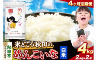米《定期便4ヶ月》ひとめぼれ【白米】 米どころ秋田県産 令和7年産 精米4kg(2kg×2袋) [米 お米 こめ 白米 精米 ブランド米 小分け ご飯 ごはん 米どころ 秋田県産 2kg袋]