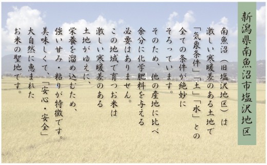 特に美味しいと言われる南魚沼産(旧塩沢地区)コシヒカリ一等米を是非ご賞味ください。