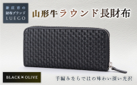 山形県で肥育された黒毛和牛「山形牛」の革を細く裁断し、一つひとつ手編で仕上げました。山形牛の革のみを使用しているため、生産できる本数は時期により変動がございます。