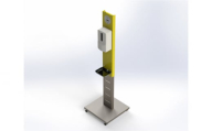 • 検温付消毒スタンドMS(イエロー)《本体サイズ:W390mm×D390mm×H940~1,340mm》非接触で検温と消毒液の供給が可能 加茂市皆川製作所