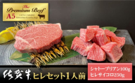 【A5ランク 超希少部位】佐賀牛 ヒレセット 1人前 ( シャトーブリアン 100g+ヒレ サイコロステーキ 250g ) 【山下牛舎】 [HAD096]