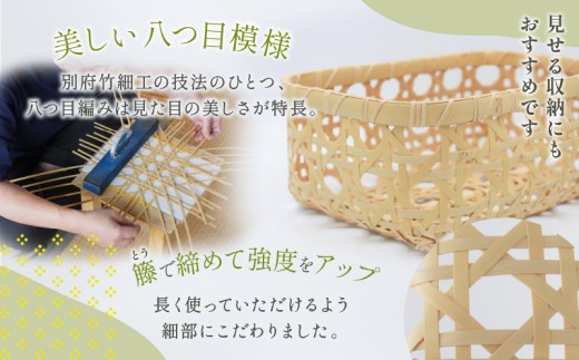 別府竹工芸研究所の網中聖二さんがつくる八ツ目模様の美しい整理カゴです。
