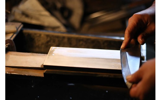 また、迫田刃物の特長である「手砥ぎ仕上げ(一般的には本刃付けと言います)」は、3段階以上の手作業での砥ぎ仕上げ、