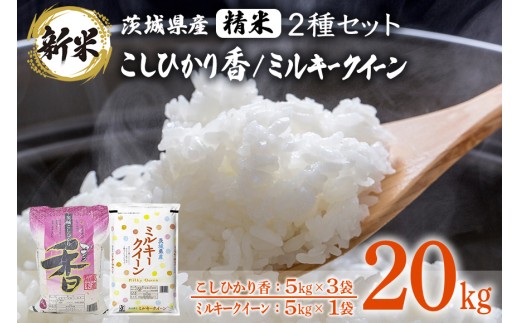 183【令和7年産】茨城県産 こしひかり香(15kg) ミルキークイーン(5kg) セット 計20kg【石崎商店】