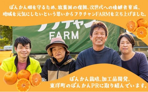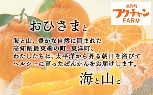 【高知県産ぽんかんの時期がやってきました!】 山と海、豊かな自然に囲まれた高知県最東端の街、東洋町。 高知県のぽんかん生産量は全国で3位! その中で東洋町は、ぽんかん生産量が県内の4割と生産量No.1を誇ります。 その太平洋から昇る朝日を浴びヘルシーに育った 『高知県東洋町産ぽんかん』を フクチャンFARMよりお届けいたします。 爽やかな酸味と甘みがギュッと詰まった『高知県東洋町産ぽんかん』をぜひご賞味ください! フクチャンFARMでは、ぽんかんを追熟させぽんかん本来の旨味と鮮やかな色をした実をお客様にお届けさせていただきます。 食べ応えのある「高知県東洋町産ぽんかん」を是非一度味わってみてはいかがでしょうか。 【ぽんかんの保管方法】 ぽんかんを美味しく召し上がっていただくためには、到着後すぐに開封し、冷暗所にて保管のうえ、お早めにお召し上がりください。 提供業者:フクチャンFARM