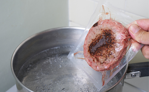 ハンバーグ生産一筋の職人が、牛肉100%の生ハンバーグの両面に手作業で焦げ目をつけて急速凍結、ひとつずつ真空包装した肉汁あふれ出す湯煎調理の簡単ハンバーグです。