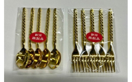 18-8ステンレスのハンドル部分に金で水玉模様を施した非常にエレガントなカトラリーのセットです。