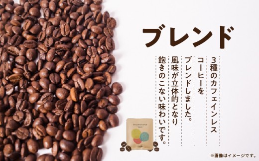 <ブレンド>3種のカフェインレスコーヒーをブレンドしました。風味が立体的となり飽きのこない味わいです。