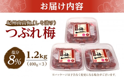 ※好評につき、25年11月以降発送※ 紀州南高梅 《つぶれ梅セット》 しそ漬け梅 塩分8%(1.2キロ)