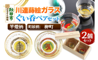 川連蒔絵ガラスぐい呑ペアセット【竿燈柄・毘沙門町「毘の字」】2個セット 481457 - 秋田県秋田市