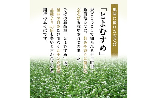 つなぎにフノリ(海藻)を使う、布乃利そばのこだわりはそのままに、そば粉は地元魚沼産の玄そば「とよむすめ」のみを使用。原材料もめんつゆもすべて国産と、徹底的に素材にこだわり、乾麺でありながら、より生麺に近づけました。