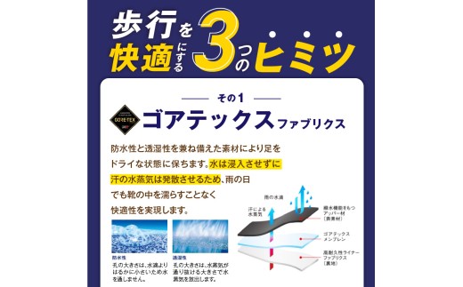 優れた防水性と透湿性を兼ね備えたゴアテックスファブリクス採用。
