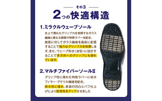 特殊素材を使用したグリップ性の高い靴底で滑りにくい。