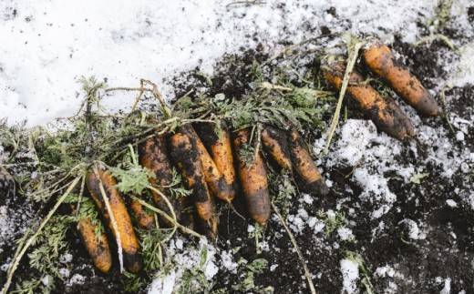 にんじんは通常秋に収穫しますが、そのまま畑に残しておくと、やがて厚い雪に覆われます。