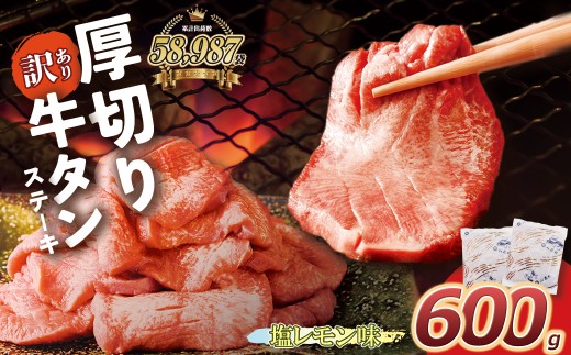 W61-41 【訳あり】厚切り 牛タンステーキ 塩レモン(600g)肉 牛肉 牛たん 牛タン ぎゅうたん タン 人気 牛タン 厚切り 味付き 肉 牛 冷凍 焼肉 牛タン 焼き肉 BBQ 訳あり おすすめ お得 最短