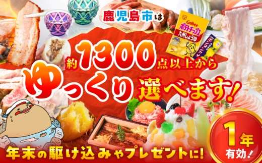 ふるさとギフト券にご寄附いただき、後日、交換サイトにて、肉・お酒・うなぎなど鹿児島市自慢の特産品に交換することが可能です。