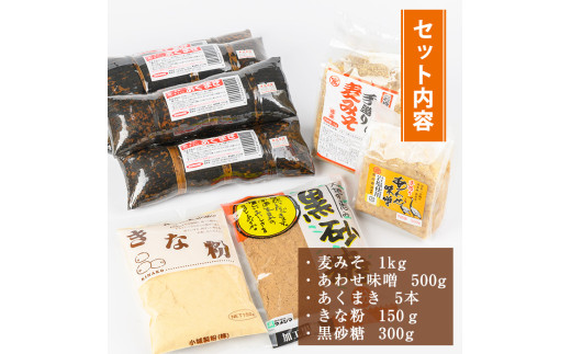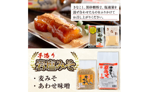 - i029 《期間・数量限定》あくまきと岩塩みそセット!手造りの麦みそ(1kg)・あわせ味噌(500g)とこだわりのあく巻(5本)をお届け!あく巻用のきな粉と黒糖粉付き♪ 味噌 みそ 合わせ味噌 味噌汁 調味料 あくまき きな粉 和菓子 お菓子 ギフト 贈り物 期間限定 数量限定 【宮田商店】