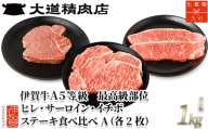 - 伊賀牛 A5 ヒレ・サーロイン サイコロステーキセットA 計約1kg【最高級部位2種食べ比べ】【dido0028-2】